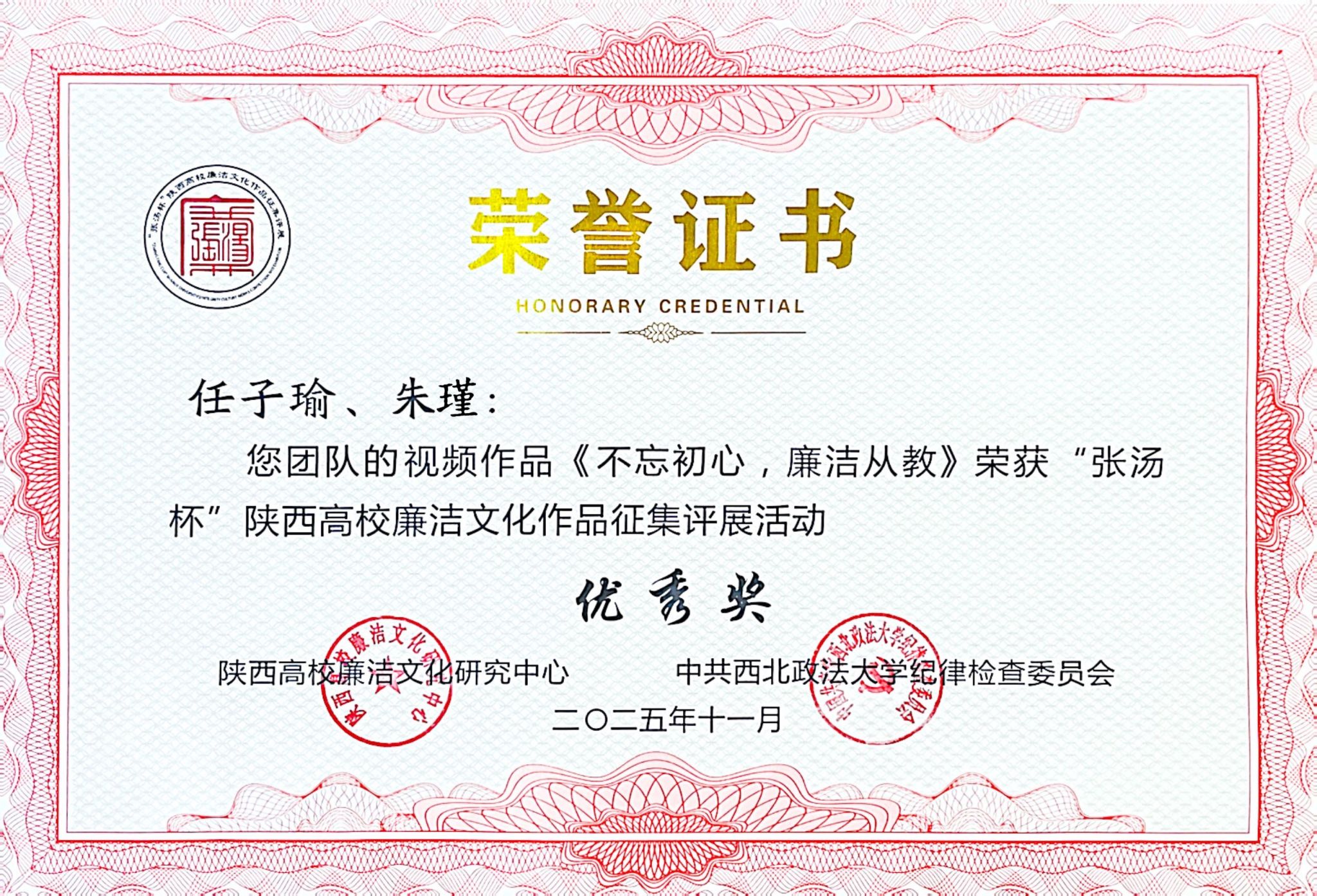 据了解,本届“张汤杯”颁奖典礼以“廉洁润心,文化铸魂”为主题,由陕西高校廉洁文化研究中心与西北政法大学纪委联合主办。活动汇聚了全省多所高校的优秀廉洁文化成果,涵盖微视频、书画、海报设计等多种艺术形式,集中展现了陕西高校廉洁文化建设的创新实践与丰硕成果,为各高校提供了交流互鉴的平台。