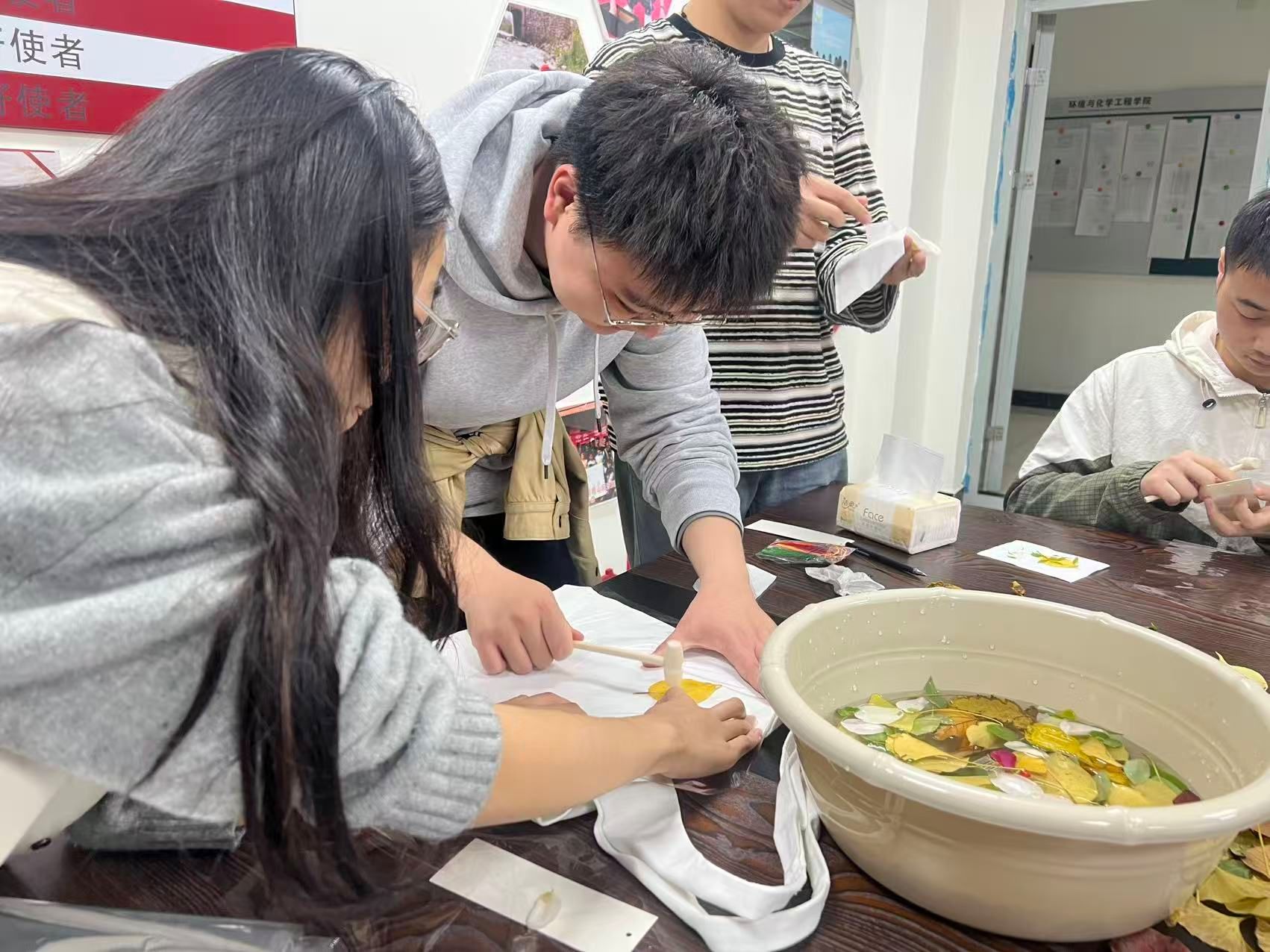 11月10日,我院“化蝶”手工坊在“一站式”学生社区举办“落叶印象,重塑新生”植物拓印活动。本次活动吸引了二十几位学生踊跃参与。