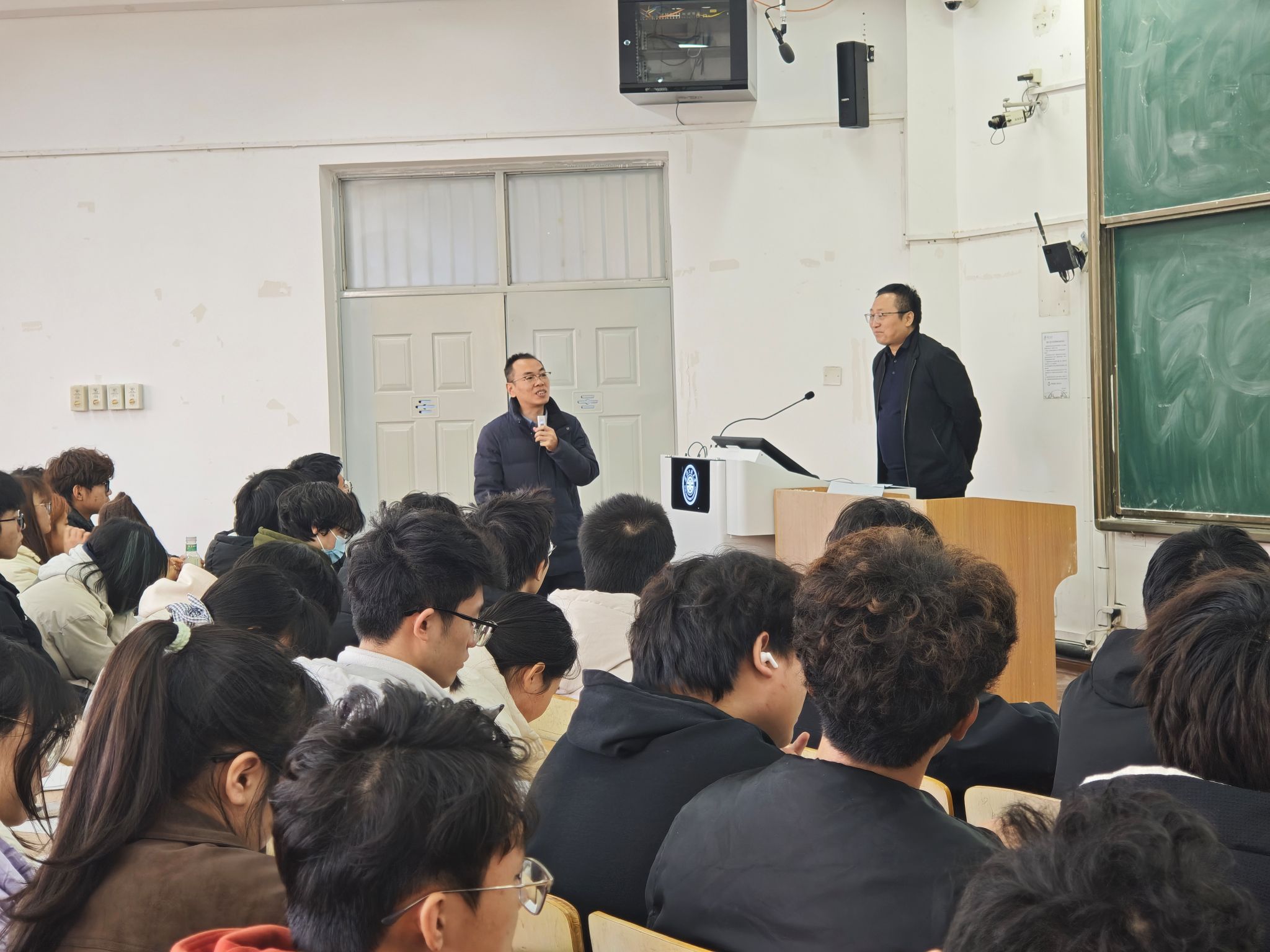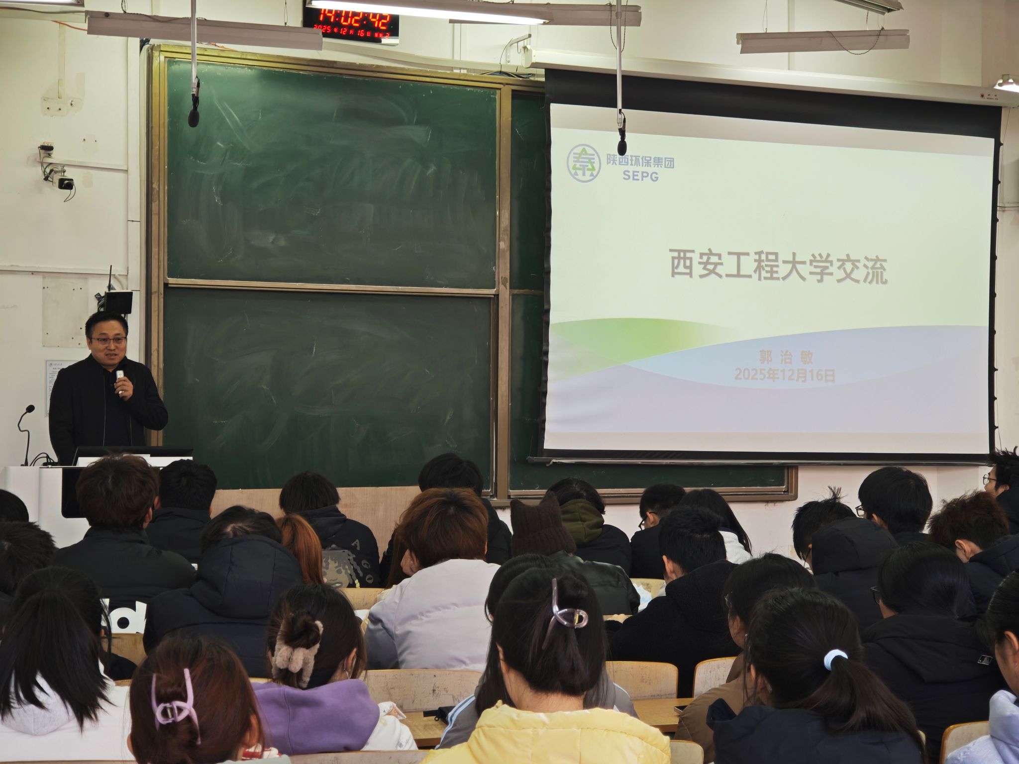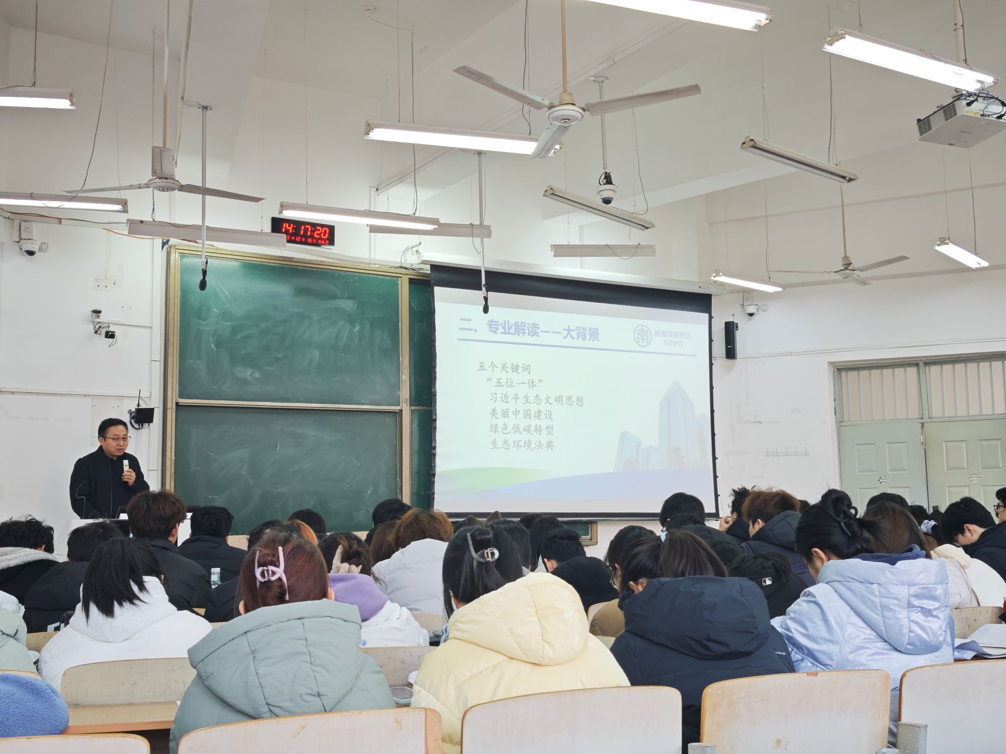 12月16日,我院第十九期“绿风·环化论坛”于临潼校区教学楼B135教室圆满举行。本次论坛特邀陕西环保集团中圣环境公司党委书记、董事长、我校95级环境工程专业校友郭治敏先生重返母校,以“人生·专业·未来”为主题,为2025级环境工程专业学生带来了一场内涵深刻、视野开阔的专题报告。学院党委副书记林定武、2025级辅导员吕国正出席活动,报告会由环境科学与工程系副主任王理明主持。