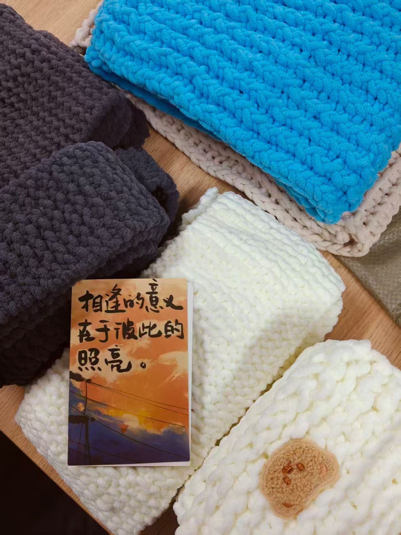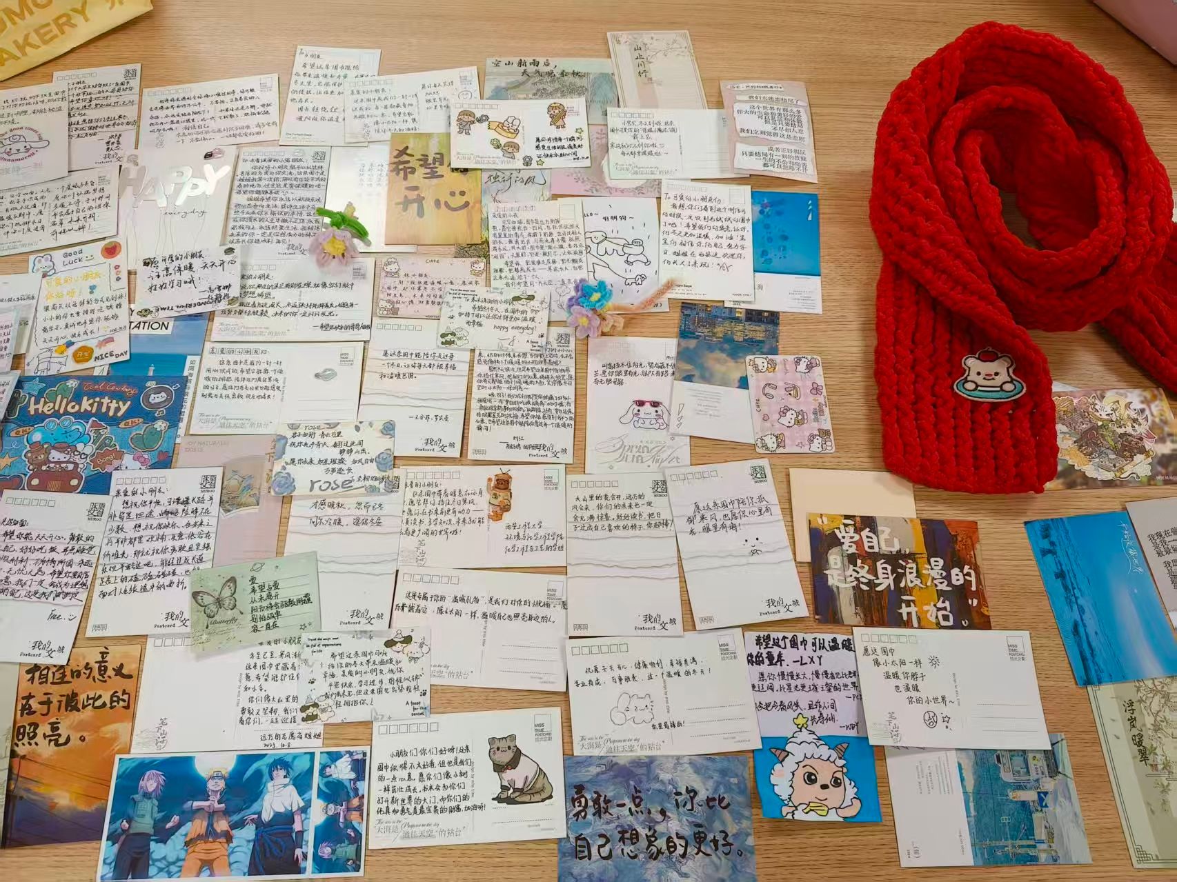 11月30日,活动负责人在学院的组织下,打包好的织物被仔细分类。同学们用手轻抚柔软的毛线,仿佛在确认这份温暖能否抵御寒冬。每一条围巾,都承载着大学生们的巧思与心意。这些凝聚着爱意的物品,即将踏上“温暖之旅”,奔赴需要它们的地方。11月31日,志愿者们完成了所有织物的分类、打包工作,将凝聚着爱心的围巾、帽子及明信片分别寄往河南省商丘市睢阳区宋集镇沙沃刘小学、四川省内江市市中区电建初级中学校(小学部)以及河南省商丘市睢阳区宋集镇颜集小学。
