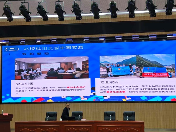 研讨环节,侯康副教授着重介绍了我校“绿风”环保社团10余年来深耕秦岭及黄河流域的生态保护工作。在学校团委和环化学院的支持下,该团队将科学研究与社会服务相结合,并有效带动高校师生服务于地方的生态环境保护工作。其先后于2021和2025年获得共青团陕西省委秦岭生态考察项目资助,并获评优秀项目,践行“绿水青山就是金山银山”的理念,为学生社团的专业和规范化探索出一条行之有效的模式。